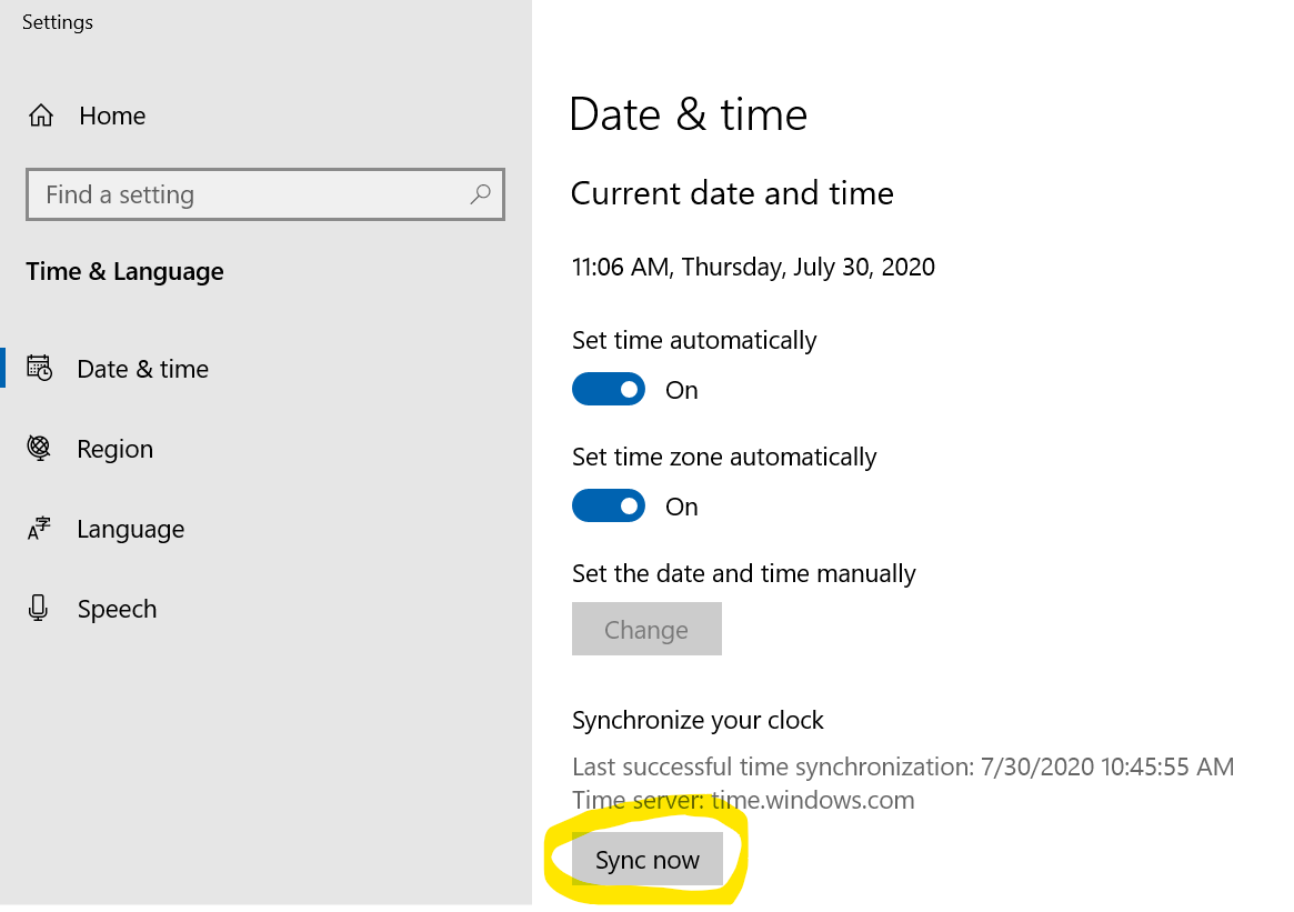 Please synchronize your clock and then try to sign in.