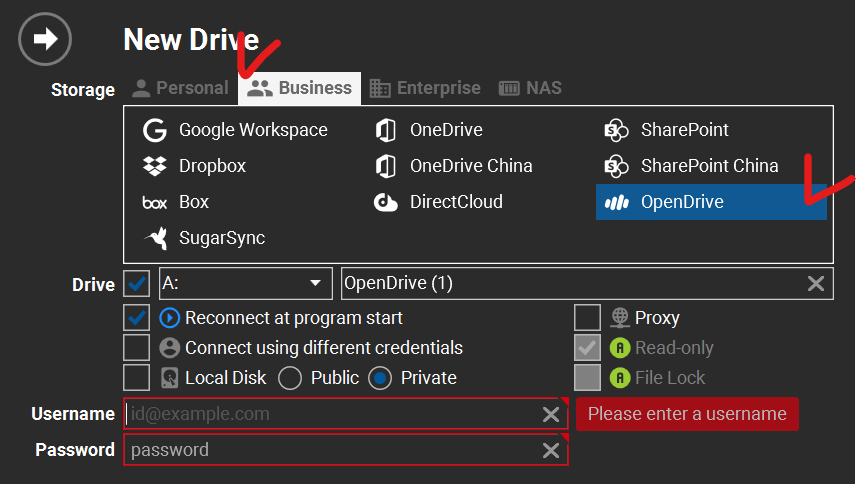 You can select the OpenDrive on the Business tab.