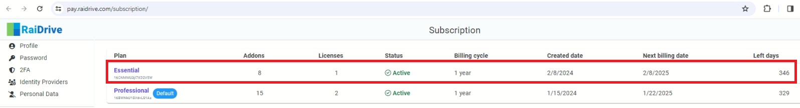 Hello, we have three RaiDrive licenses, two under the old format called Professional, and a third bought later that is under a new format called Essential.