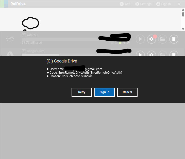 Unable to access GDrive. Unable to sign in to RAIDrive professional account.