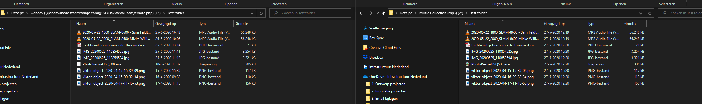 Once using Webdav protocol of windows (left) and once connected with RaiDrive.